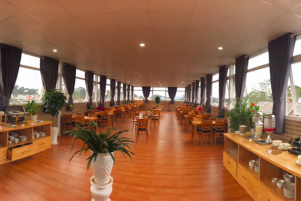 Nằm tại sân thượng khách sạn, bắt trọn cảnh quan xung quanh Đà Lạt. Ẩm thực phong phú mang phong cách Âu – Á với tiệc buffet và các Set menu hấp dẫn tin chắc sẽ làm vừa lòng Quý Khách lưu trú tại khách sạn.